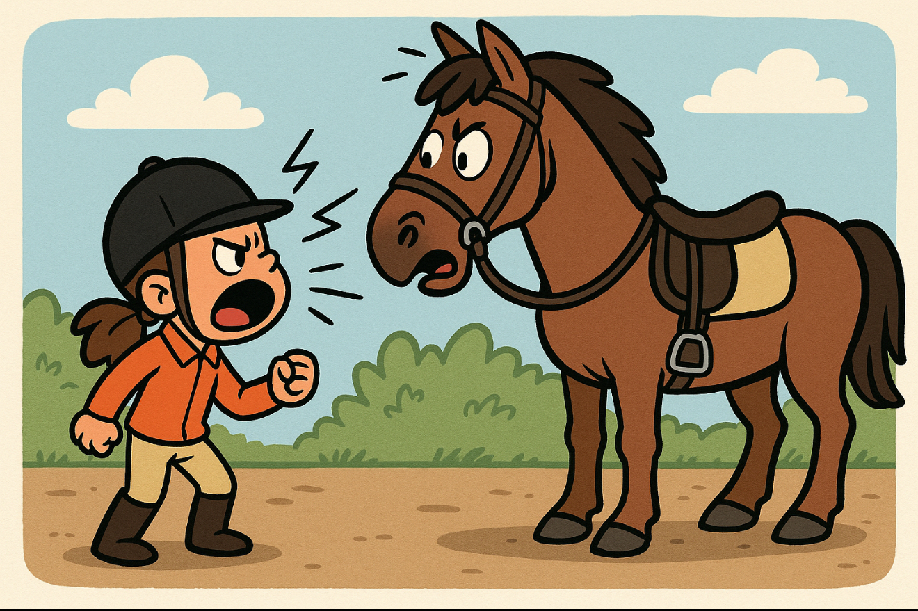 As a teacher, it’s painful to watch students get lost in anger or frustration, especially when those feelings are directed at the horses they ride. This is a common concern shared by our instructor clients.